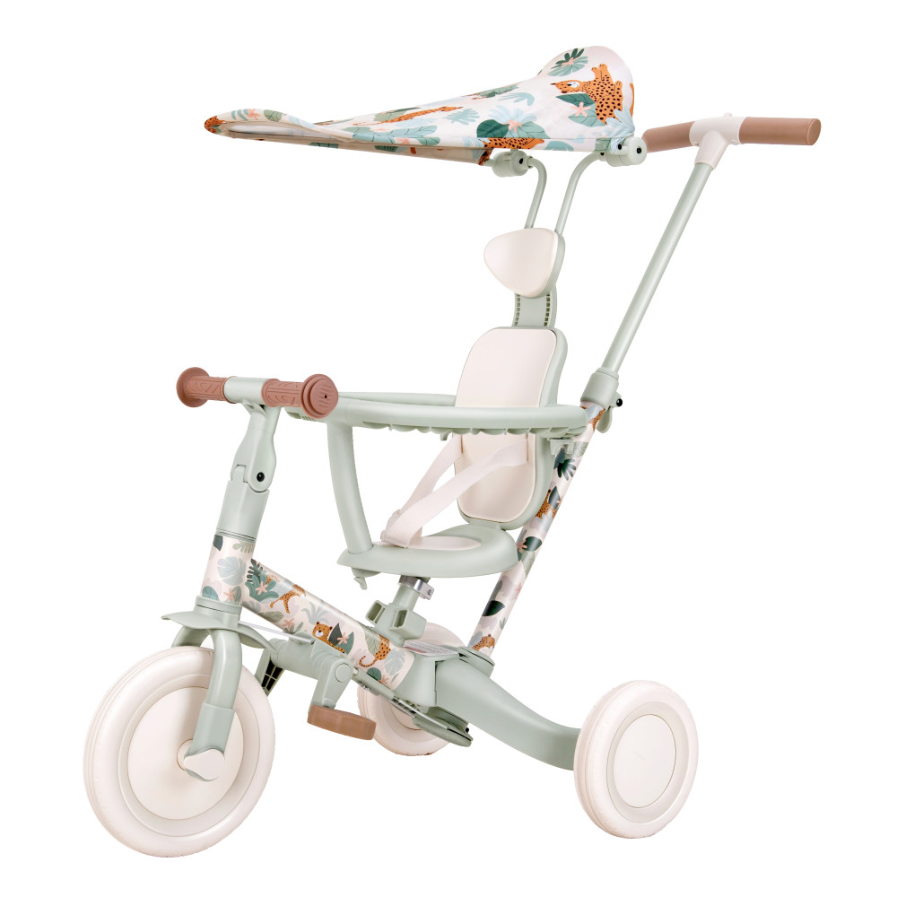 Детский беговел-велосипед 8в1 с крышей и ручкой, бежевый с рисунком - TR008C-BEIGE-PAINT - это обновленная модель беговела TR008 с боковой поддержкой сиденья и защитным козырьком от солнца. TR008C - это удобный, универсальный и надежный беговел для детей от 1 до 5 лет, с возможностью становиться велосипедом!