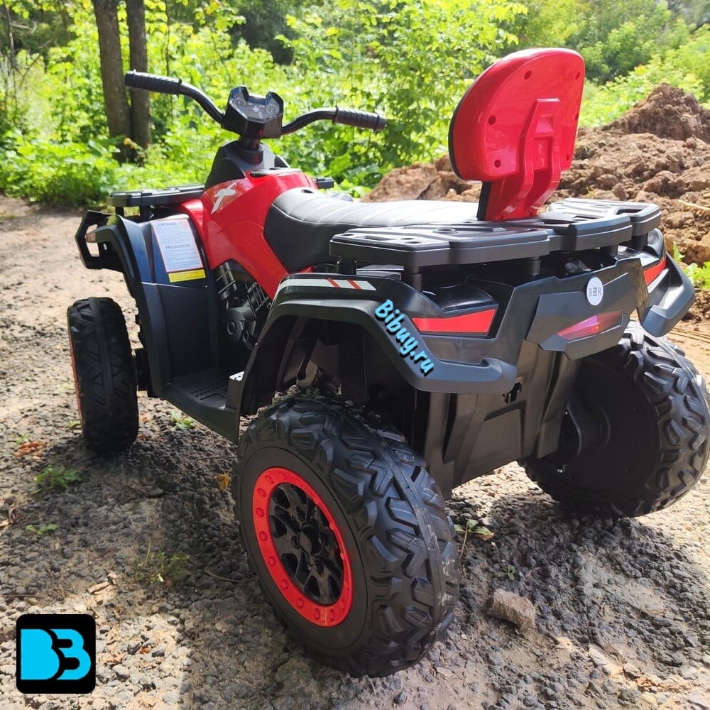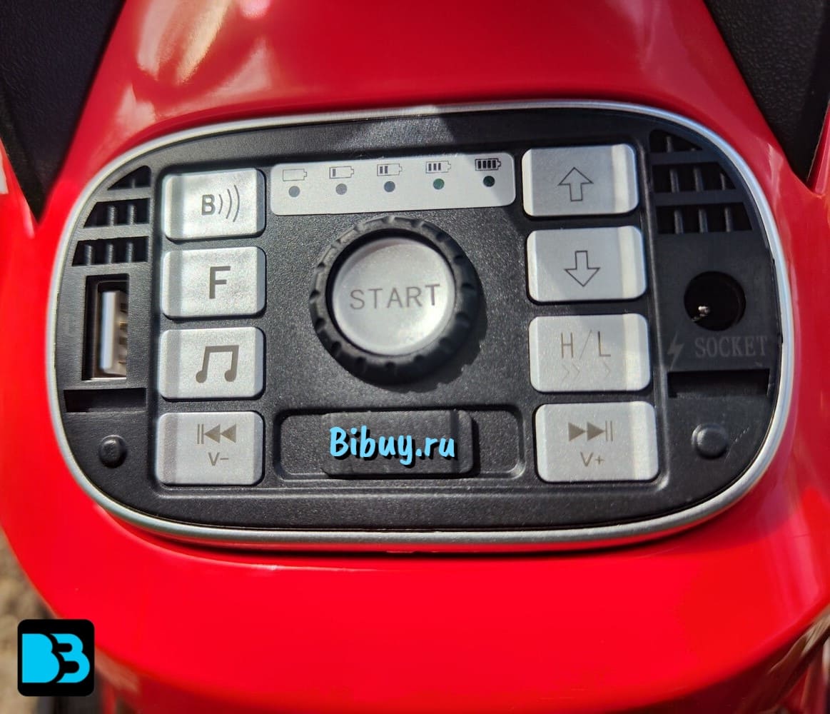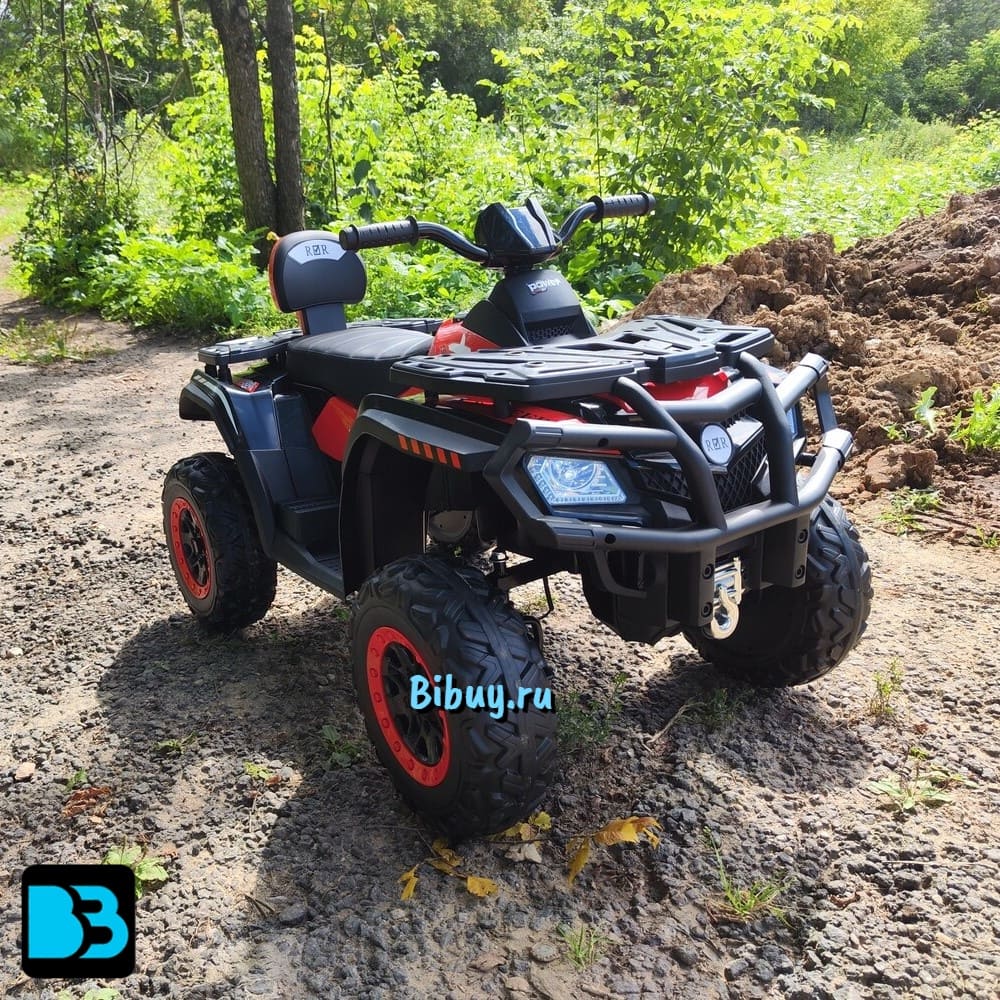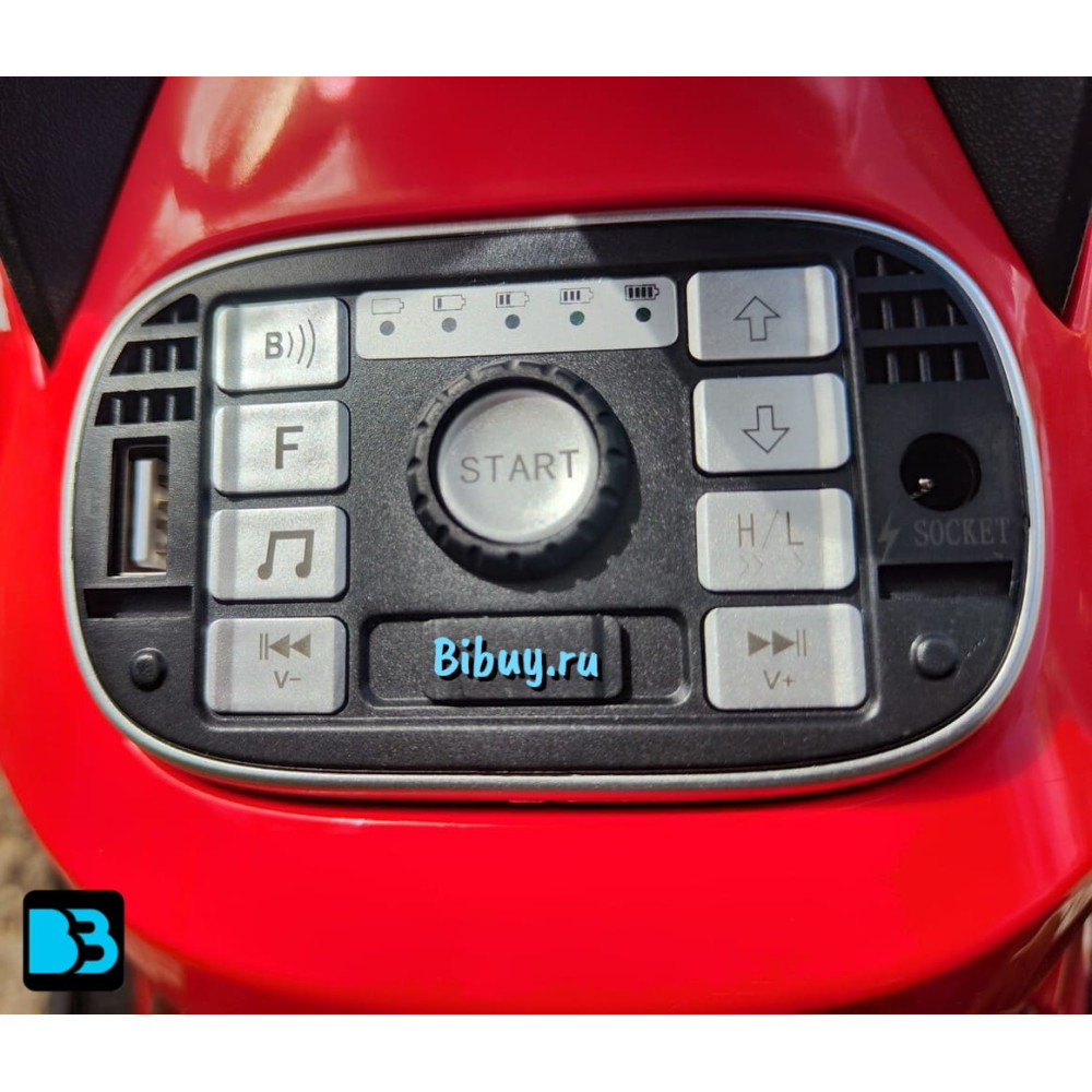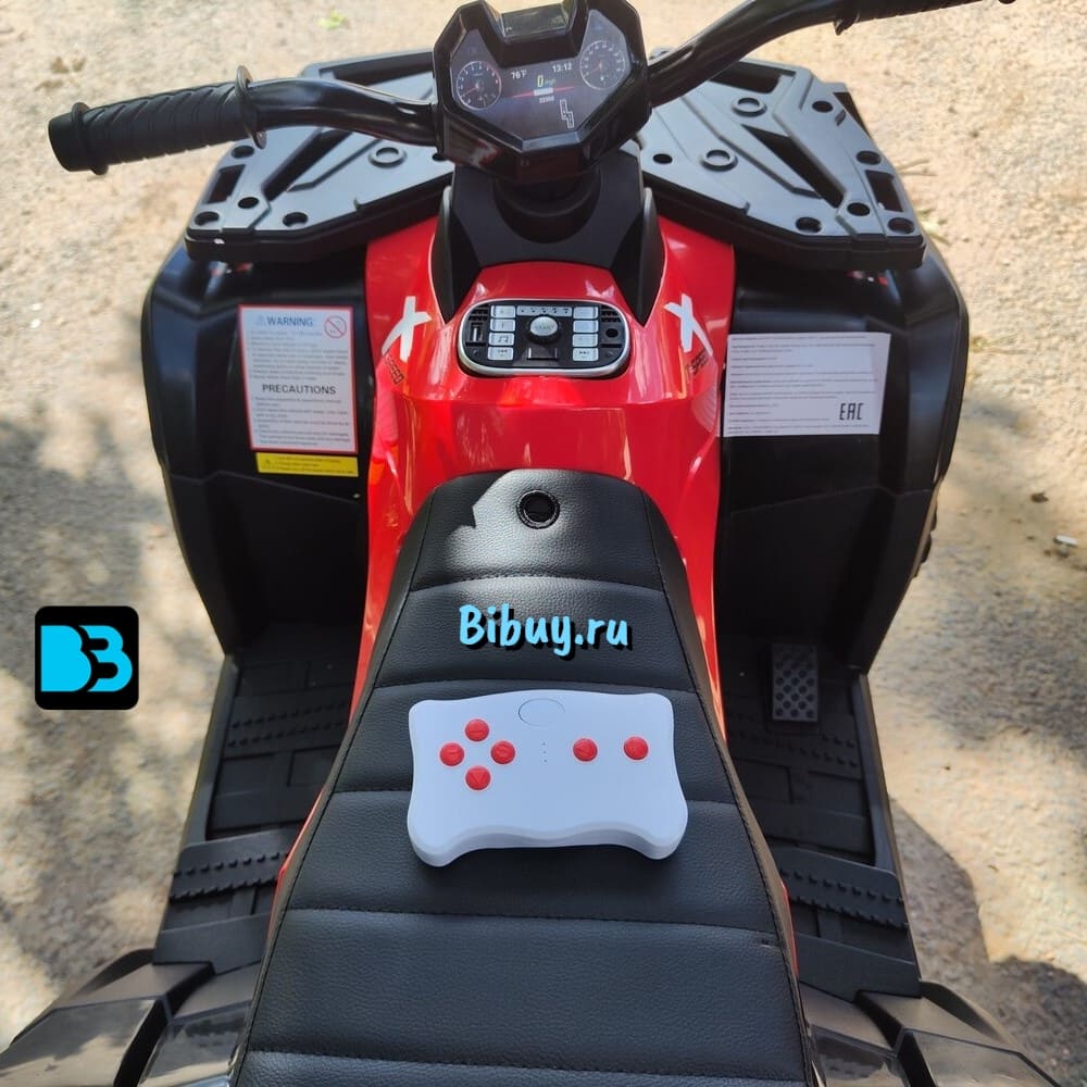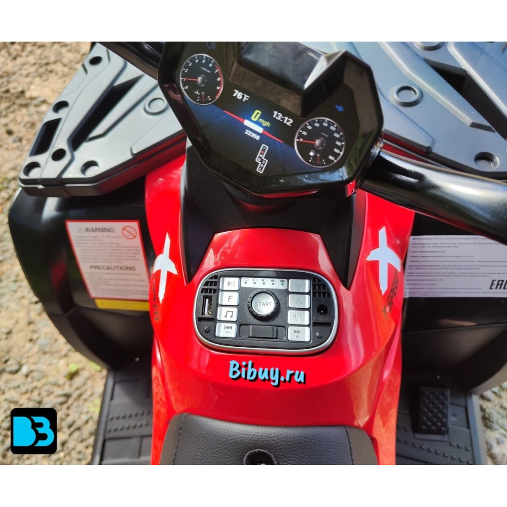 Среди дополнительных возможностей квадроцикла можно выделить кнопочное включение, передние фары, заводские мелодии, медиа-панель с USB-входом, AUX-входом, Bluetooth, FM и индикатором заряда батареи.