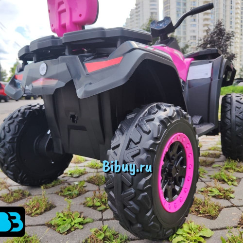 Детский электроквадроцикл T001TT оснащен мощным аккумулятором 12V/10Ah и четырьмя двигателями по 12V/10000 об/мин и мощностью 45W, обеспечивающими полноприводную систему. Задние амортизаторы обеспечивают комфорт при движении, а колеса из резины EVA радиусом 33 см и шириной 11 см не шумят и не дребезжат, обеспечивая плавное передвижение с клиренсом 18,5 см.