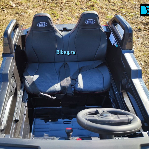 Модель выглядит как настоящий внедорожник: открываются двери, что добавляет реализма и удобства посадки. Сиденья обиты эко-кожей и регулируются вперед-назад, обеспечивая комфорт для детей разного роста. Размеры собранной модели — 149 × 98 × 76 см, вес — 40,2 кг, что делает ее устойчивой, но маневренной. Максимальная нагрузка — 100 кг, так что подойдет для двоих детей или подростка.