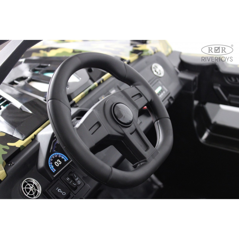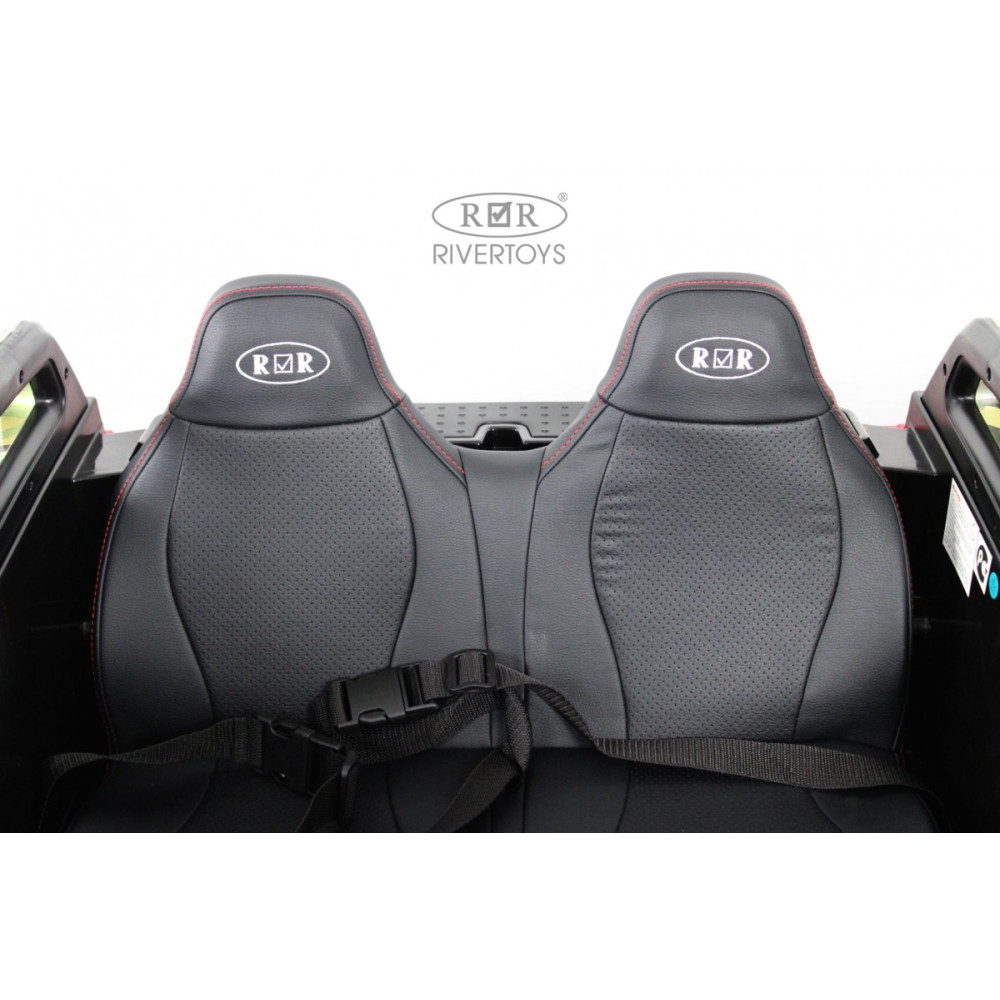 Модель выглядит как настоящий внедорожник: открываются двери, что добавляет реализма и удобства посадки. Сиденья обиты эко-кожей и регулируются вперед-назад, обеспечивая комфорт для детей разного роста. Размеры собранной модели — 149 × 98 × 76 см, вес — 40,2 кг, что делает ее устойчивой, но маневренной. Максимальная нагрузка — 100 кг, так что подойдет для двоих детей или подростка.
