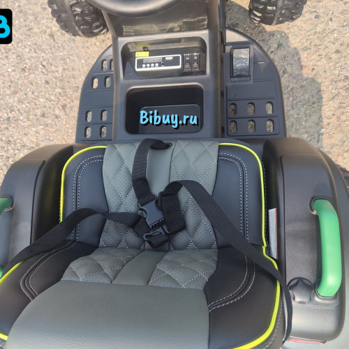 Благодаря большим колесам с протекторами у машины прекрасная проходимость. В салоне большое эко-кожаное водительское сидение с ремнями безопасности и ограничительными бортиками по бокам, настоящая аудио магнитола с возможностью подключения гаджетов через разъемы AUX и USB, включение microSD.
