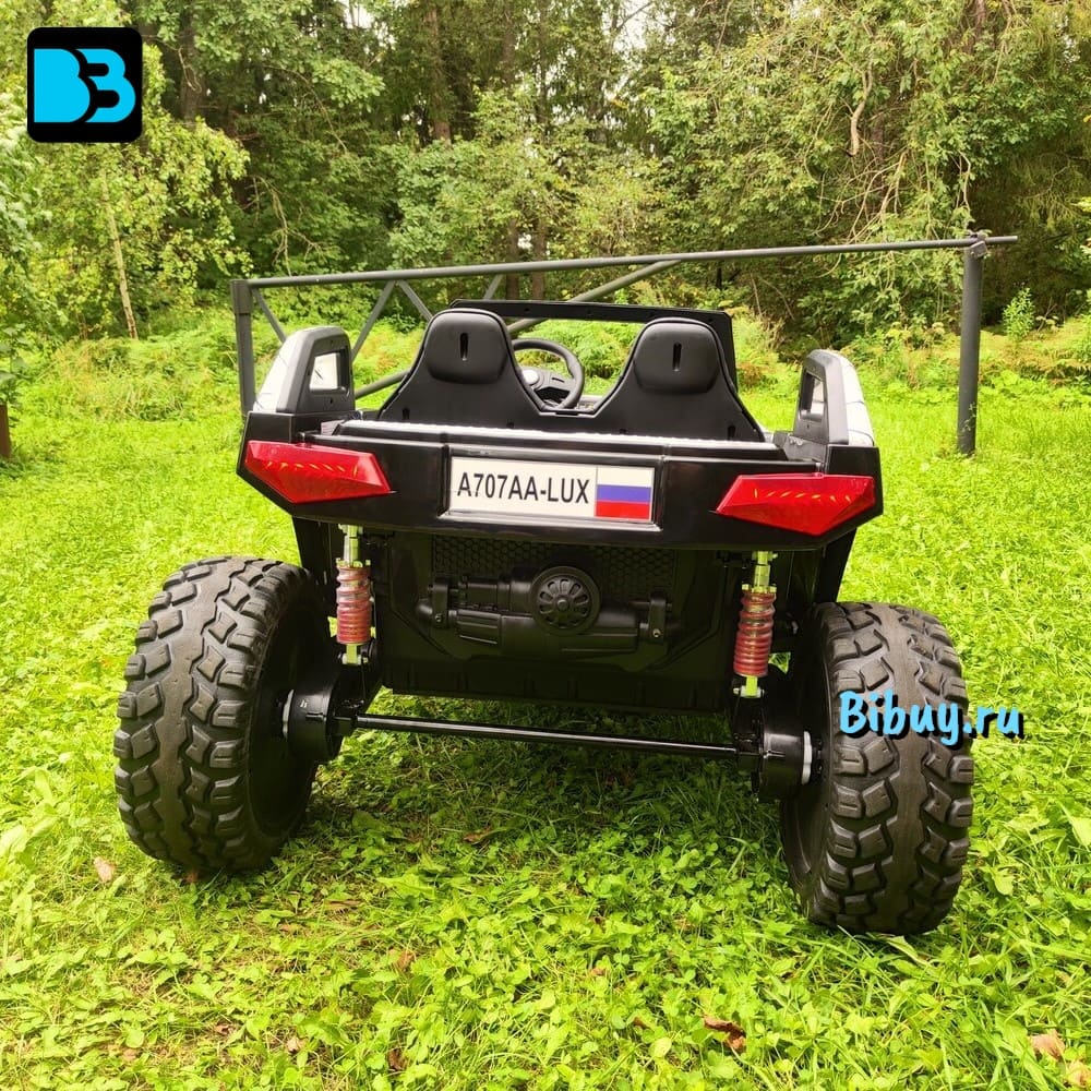 Детский электромобиль Buggy A707AA подойдет для двух детей до 5 лет или одного ребенка от 1 года до 8 лет. Модель A707AA самый большой багги с пультом управления. Размеры авто составляют 149х98х76 см, а максимально допустимая нагрузка 100 кг. Полноприводный багги комплектуется электродвигателями мощность по 55Вт каждый. Суммарная мощность 220 Вт.
