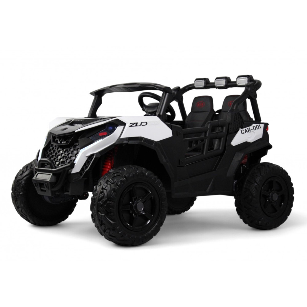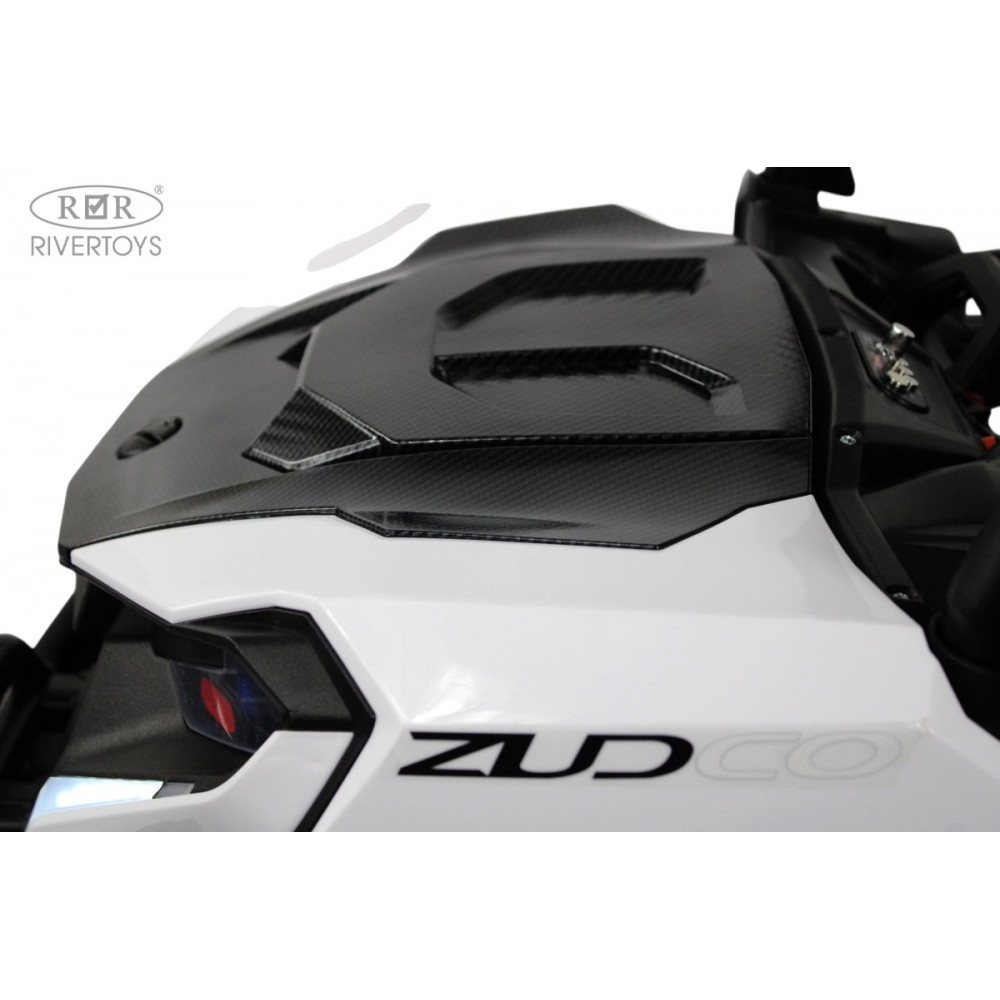 Просторный салон вмещает двух детей на сиденьях из эко-кожи с полостными ремнями безопасности. Открывающиеся двери и капот, каучуковые колеса с задними амортизаторами создают ощущение настоящего автомобиля. Медиа-панель с Bluetooth, USB-портом и заводскими мелодиями превращает каждую поездку в увлекательное приключение.