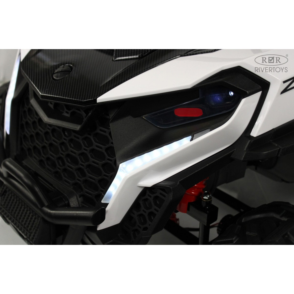 Передние и задние фары, подсветка радиаторной решетки и люстра с отдельным управлением обеспечивают видимость в темное время суток. Звуковые сигналы и индикатор заряда батареи добавляют практичности. Мощный аккумулятор 24V/7Ah гарантирует продолжительное время игры.