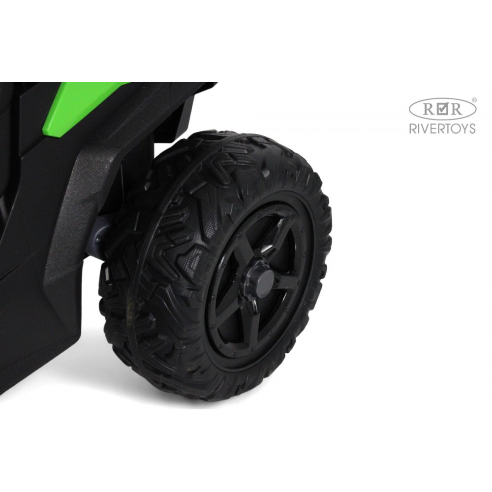 Передние и задние фары, подсветка радиаторной решетки и люстра с отдельным управлением обеспечивают видимость в темное время суток. Звуковые сигналы и индикатор заряда батареи добавляют практичности. Мощный аккумулятор 24V/7Ah гарантирует продолжительное время игры.