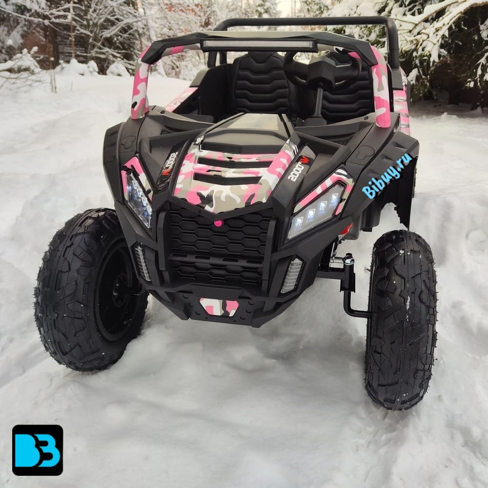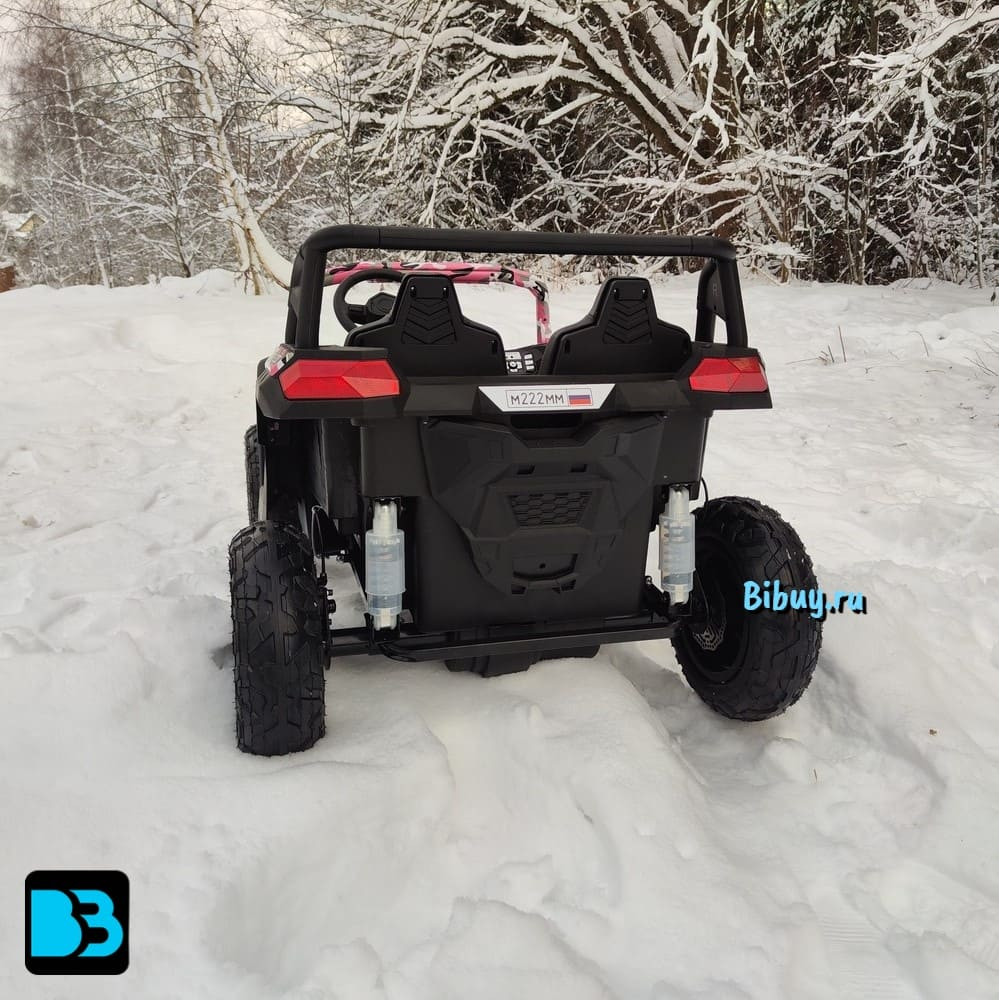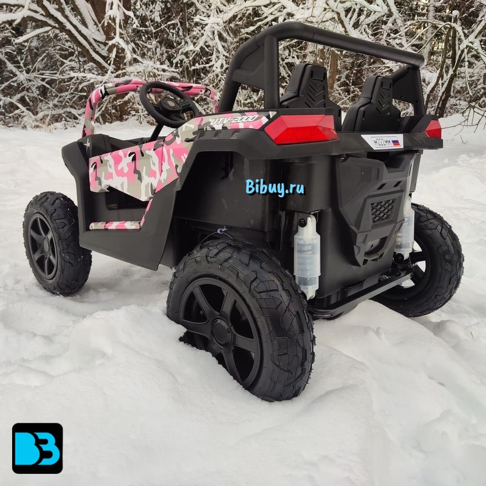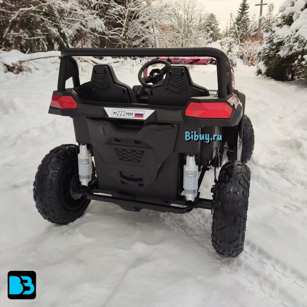 Оригинальная модель детского электромобиля M222MM (RIVERTOYS) подойдет для одного ребёнка до 8-12 лет или двух детей от 2-х до 6 лет с общим весом не более 100 кг. Модель одна из крупных – её размеры в собранном виде 131x99x77 см и вес 56,3 кг. Пневматические надувные колеса с рельефным протектором долговечны, препятствуют скольжению и тихие. Мощный двигатель 180w на задних колесах с дисковыми тормозами и задними амортизаторами делают возможным использование в условиях бездорожья без лишней вибрации и дребезжания.