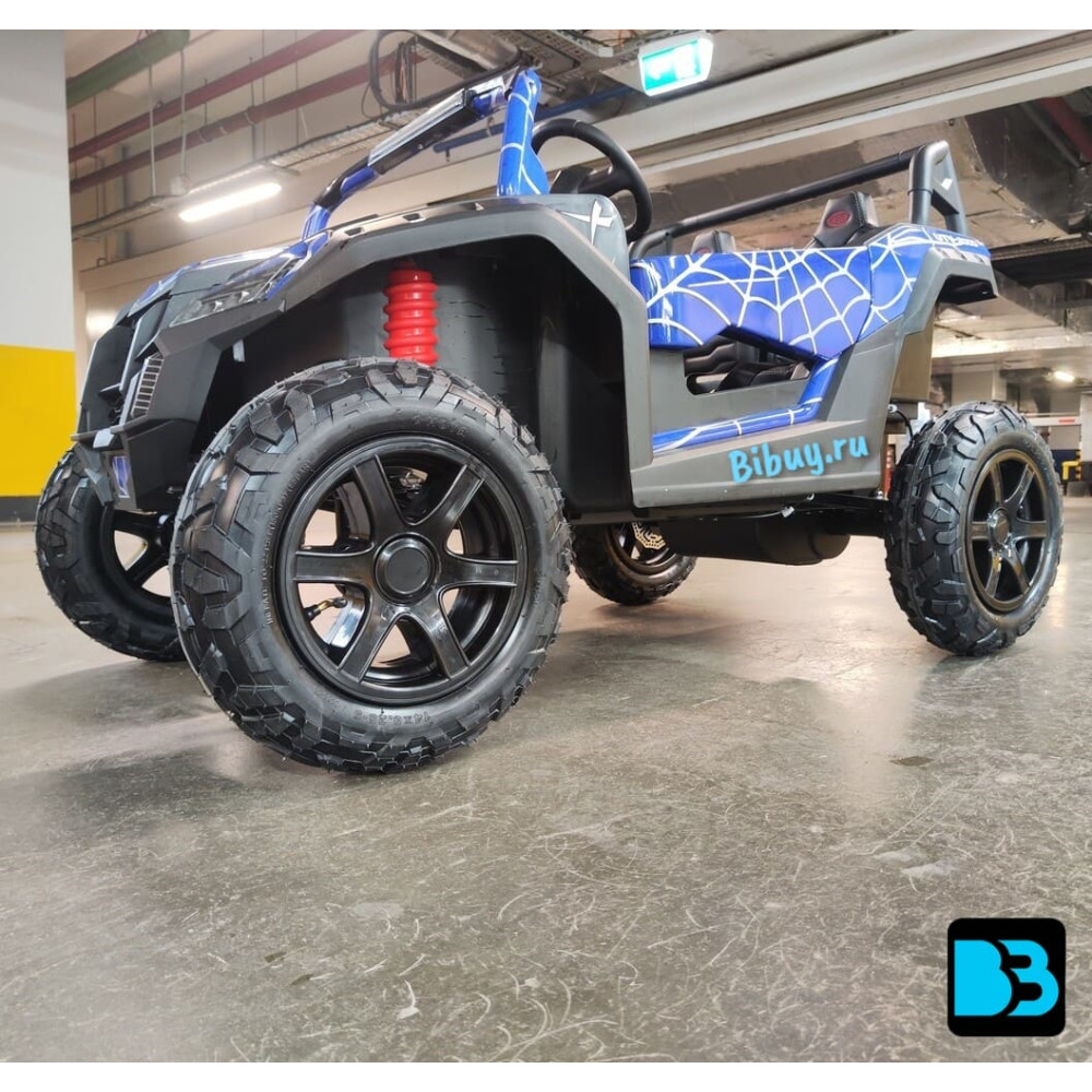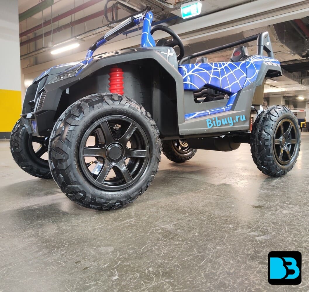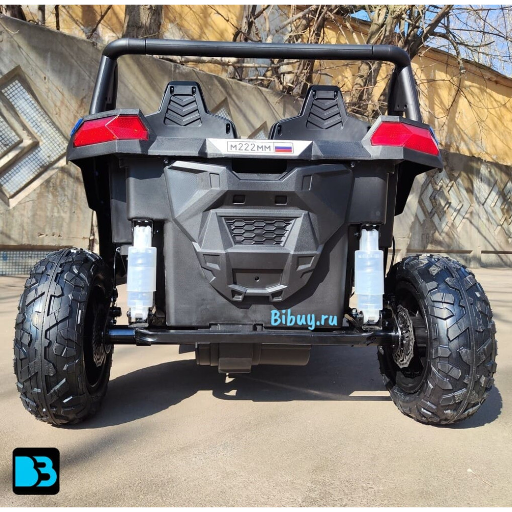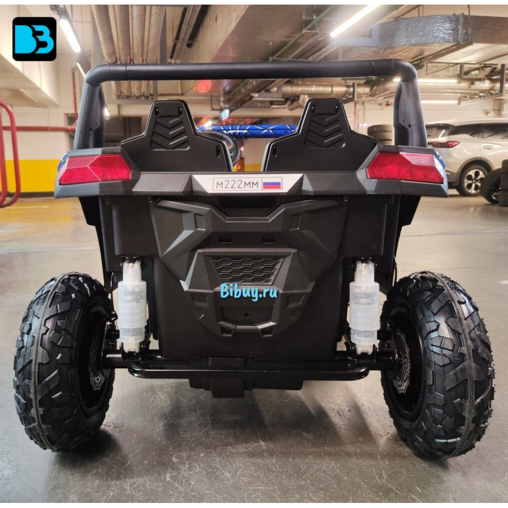 Оригинальная модель детского электромобиля M222MM (RIVERTOYS) подойдет для одного ребёнка до 8-12 лет или двух детей от 2-х до 6 лет с общим весом не более 100 кг. Модель одна из крупных – её размеры в собранном виде 131x99x77 см и вес 56,3 кг. Пневматические надувные колеса с рельефным протектором долговечны, препятствуют скольжению и тихие. Мощный двигатель 180w на задних колесах с дисковыми тормозами и задними амортизаторами делают возможным использование в условиях бездорожья без лишней вибрации и дребезжания.