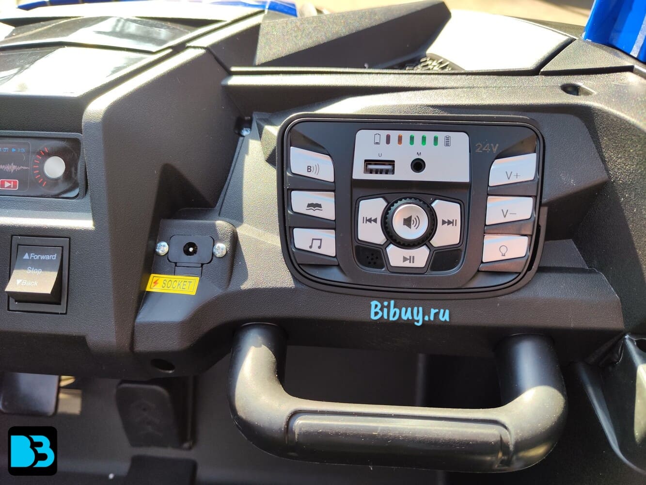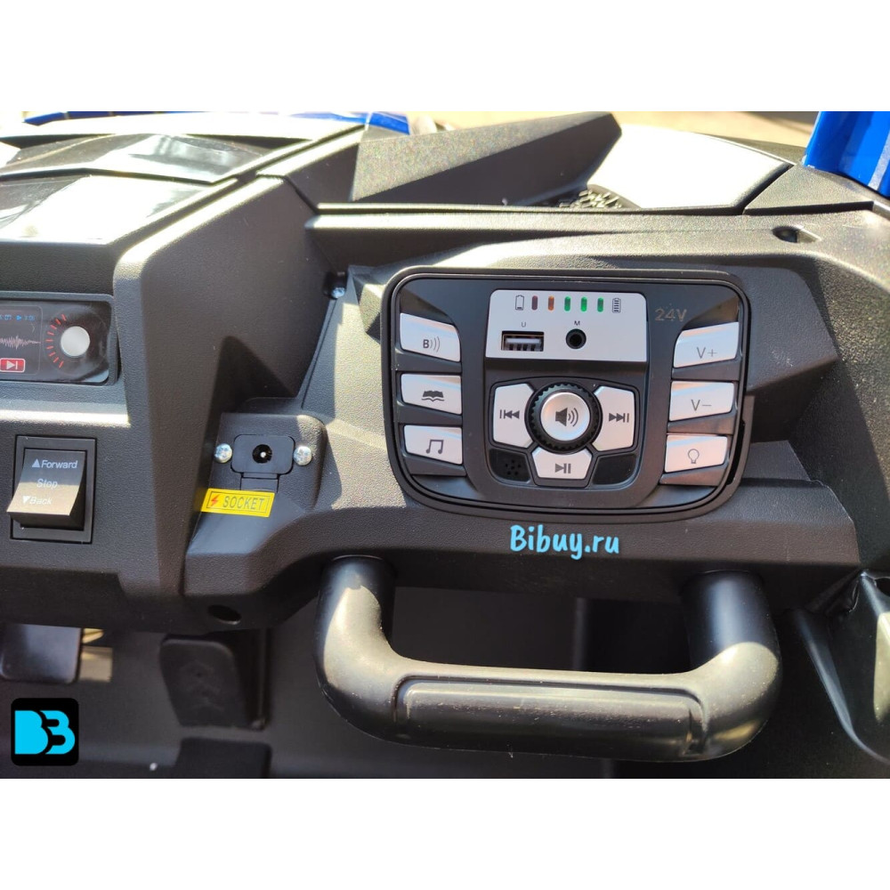 Также маленькие водители, находясь за рулём, могут слушать любимую музыку. Для этого имеется медиа-панель, оснащённая USB-входом, mp3-входом и Bluetooh. Здесь же индикатор заряда батареи, что помогает контролировать своевременную зарядку.