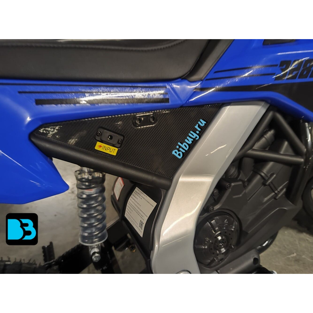 Детский скоростной мотоцикл E777KX синий, 18 км/ч, двухместный