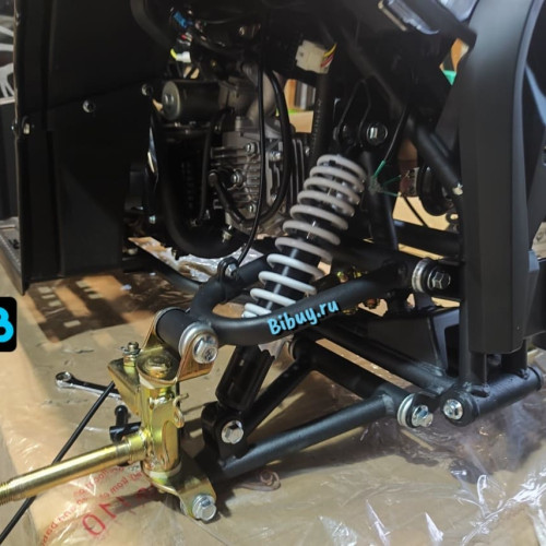 SIMBA оснащен автоматической трансмиссией с задним приводом и цепной главной передачей, что делает управление простым и интуитивным. Запуск двигателя осуществляется электростартером: достаточно зажать кнопку запуска с нажатым тормозом для легкого автостарта, а дистанционный ключ позволяет активировать мотор удаленно. Система зажигания электронная, подача топлива — карбюраторная на бензине АИ-92, с пластиковым баком объемом 2,5 л для длительных поездок. Воздушное охлаждение поддерживает оптимальную температуру, а экстренное торможение двигателя добавляет слой безопасности.