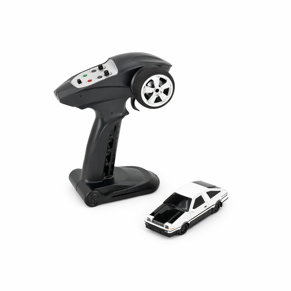 Радиоуправляемая дрифт машина Toyota AE86 1:43 - RC43-A1 - это машина, которая предназначена для дрифта. Она имеет полный привод и выполненная в масштабе 1:43. Машинка управляется при помощи пульта ДУ, работающего на частоте 2,4 ГГц. В наборе также поставляются комплект запасных колес, дорожные конусы, зарядное устройство и аккумулятор. Во время движения у машинки светятся фары.