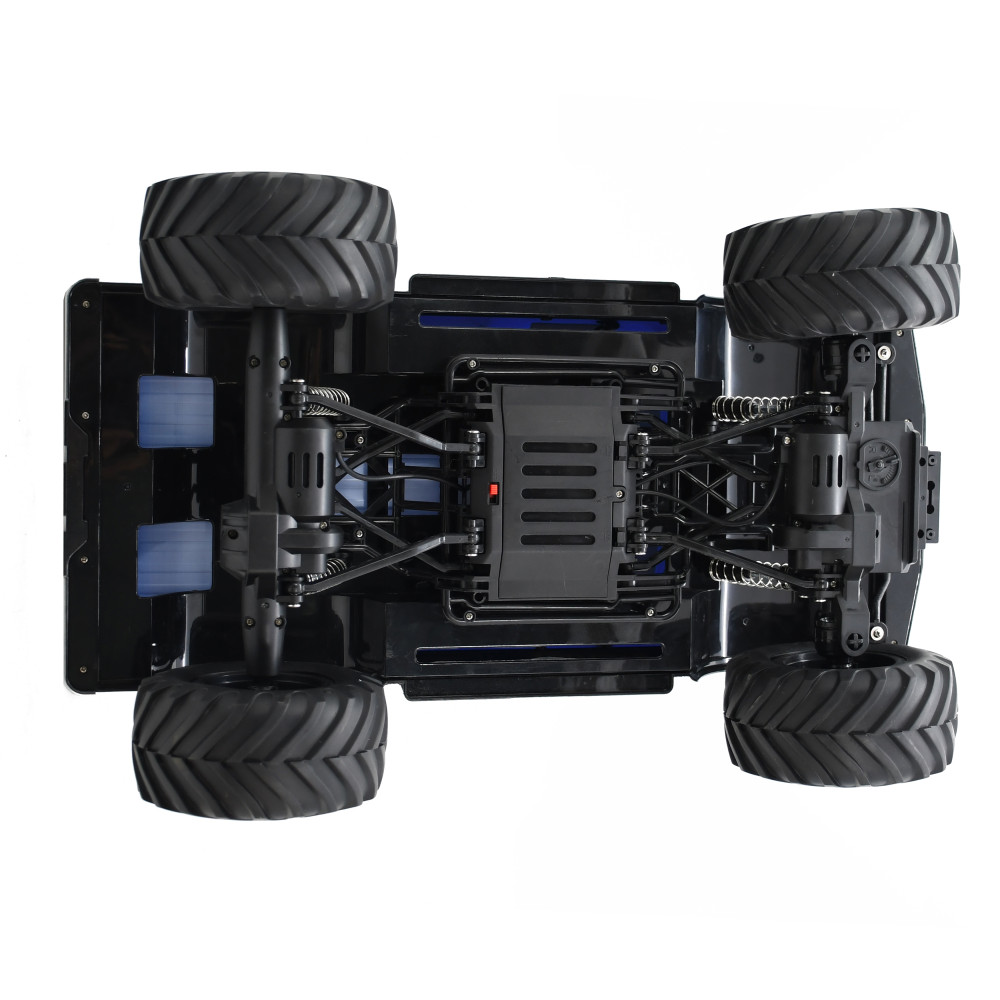 Корпус выполнен из ударопрочного ABS пластика. Впереди присутствует имитация бампера безопасности. Машинка работает от аккумулятора 7.4V, пульт – батарейки типа АА.