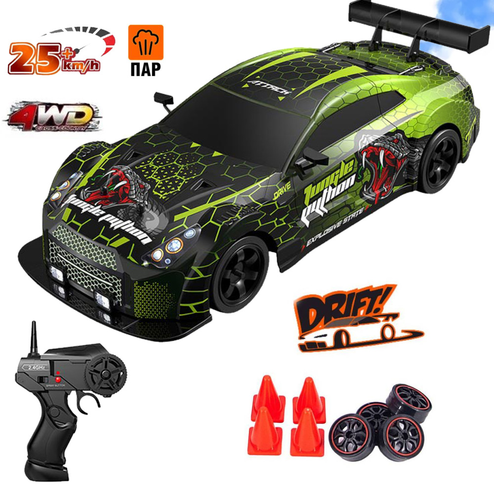 Радиоуправляемая машина для дрифта HB Nissan GTR (4WD, свет, пар, акб, 1:16) - SC16A13 - это динамичная и манёвренная модель с полным приводом 4WD, созданная для эффектных заносов и быстрой езды. Оснащена световыми эффектами и функцией выпуска пара, что делает управление более реалистичным. Подходит для игры дома и на улице. Во время движения у машинки светятся фары и можно активировать спрей-пар из выхлопной трубы.
