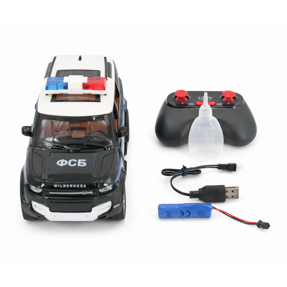 Радиоуправляемая металлическая полицейская машина Land Rover Defender 1:22 - HCL-3610-BLACK - это стильная и детализированная модель с кузовом DIE-CAST, светодиодной подсветкой фар и эффектным парогенератором с подсветкой. Открывающиеся двери, капот и багажник делают модель максимально реалистичной. Отличный вариант для игры и подарка.