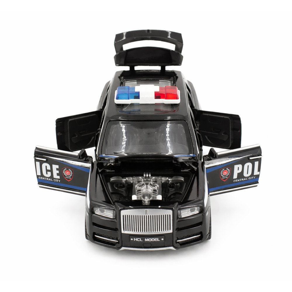 Радиоуправляемая металлическая полицейская машина Rolls-Royce Cullinan 1:22 - HCL-3606-BLACK - это стильная и детализированная модель с кузовом DIE-CAST, светодиодной подсветкой фар и эффектным парогенератором с подсветкой. Открывающиеся двери, капот и багажник делают модель максимально реалистичной. Отличный вариант для игры и подарка.