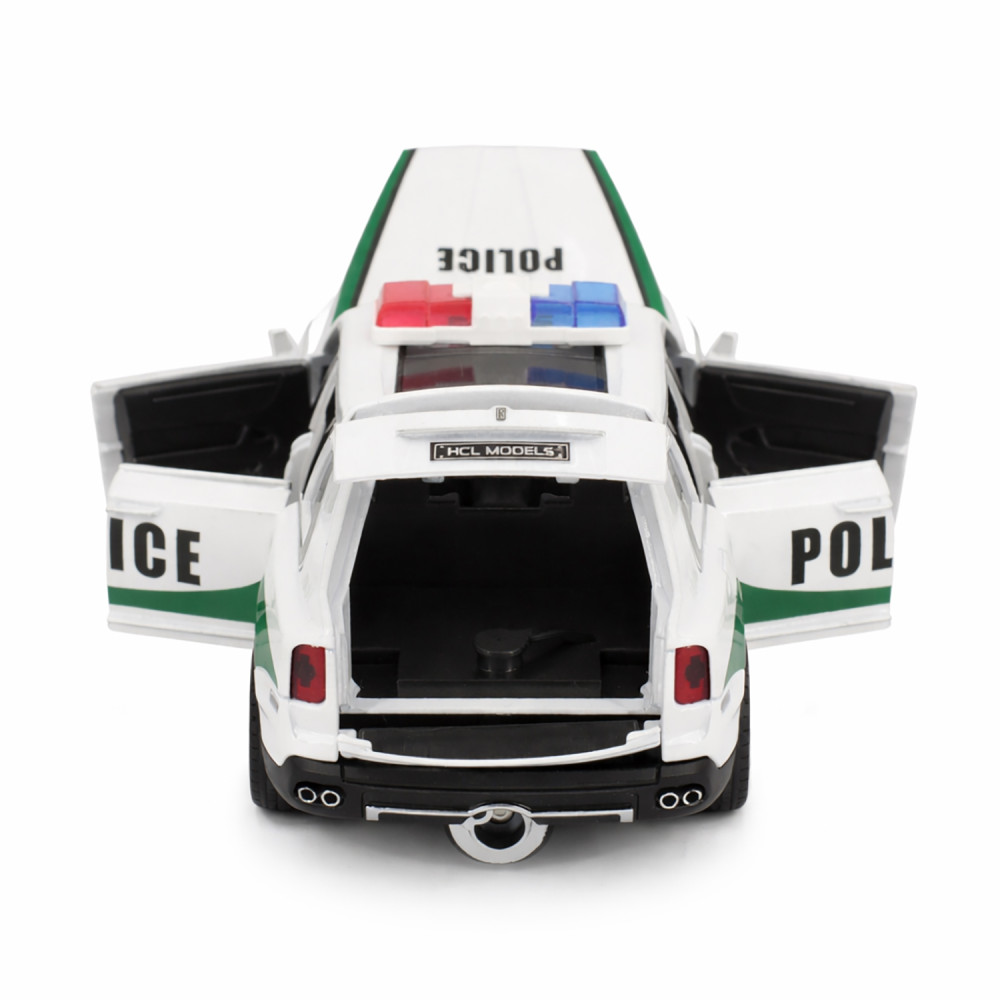 Радиоуправляемая металлическая полицейская машина Rolls-Royce Cullinan 1:22 - HCL-3606-WHITE - это стильная и детализированная модель с кузовом DIE-CAST, светодиодной подсветкой фар и эффектным парогенератором с подсветкой. Открывающиеся двери, капот и багажник делают модель максимально реалистичной. Отличный вариант для игры и подарка.