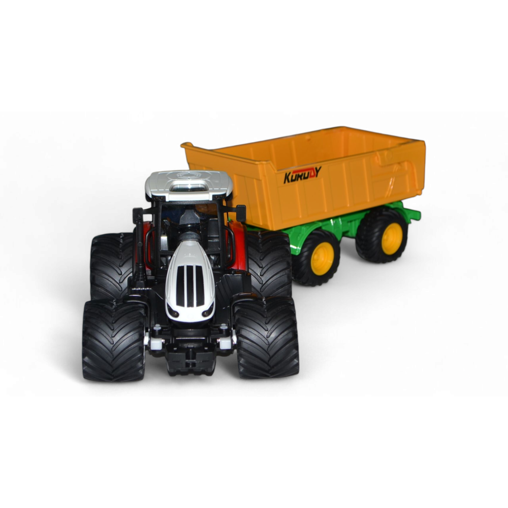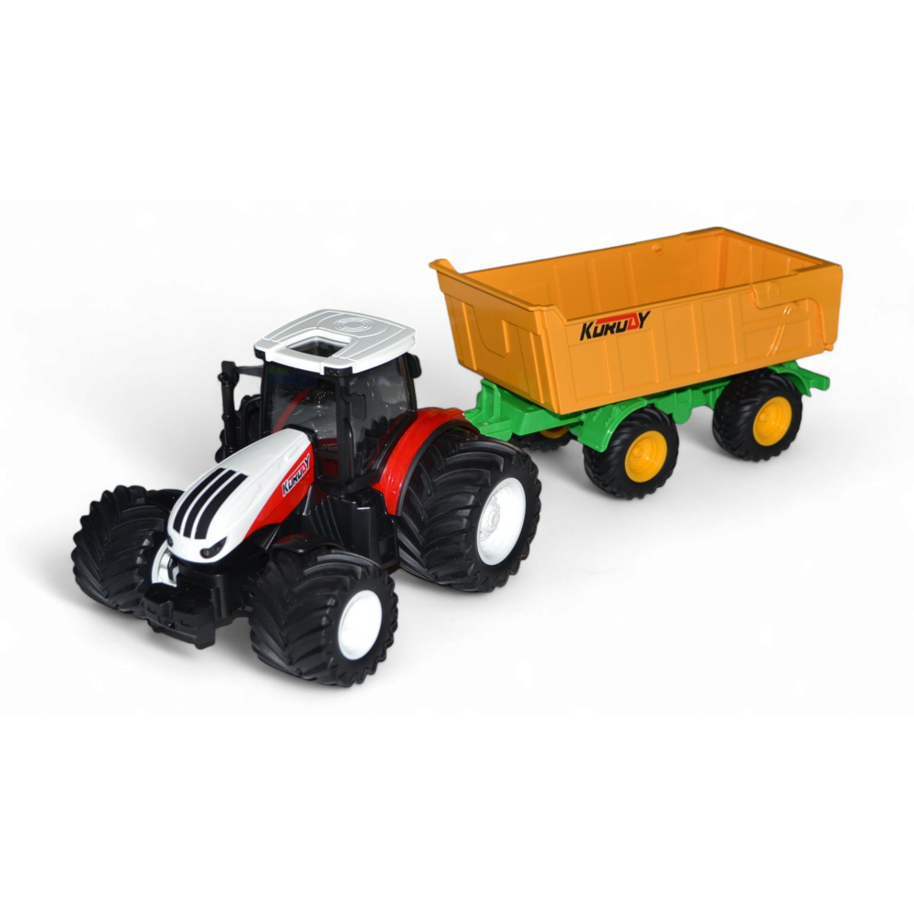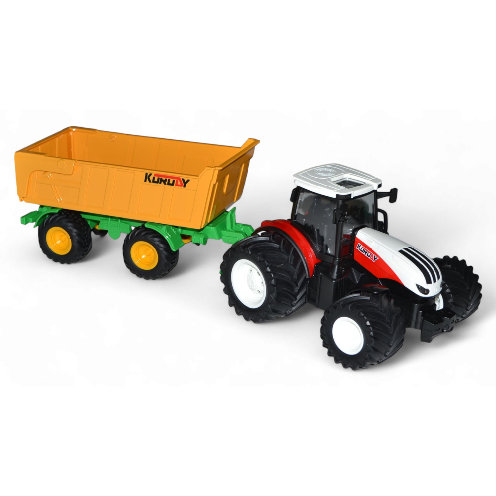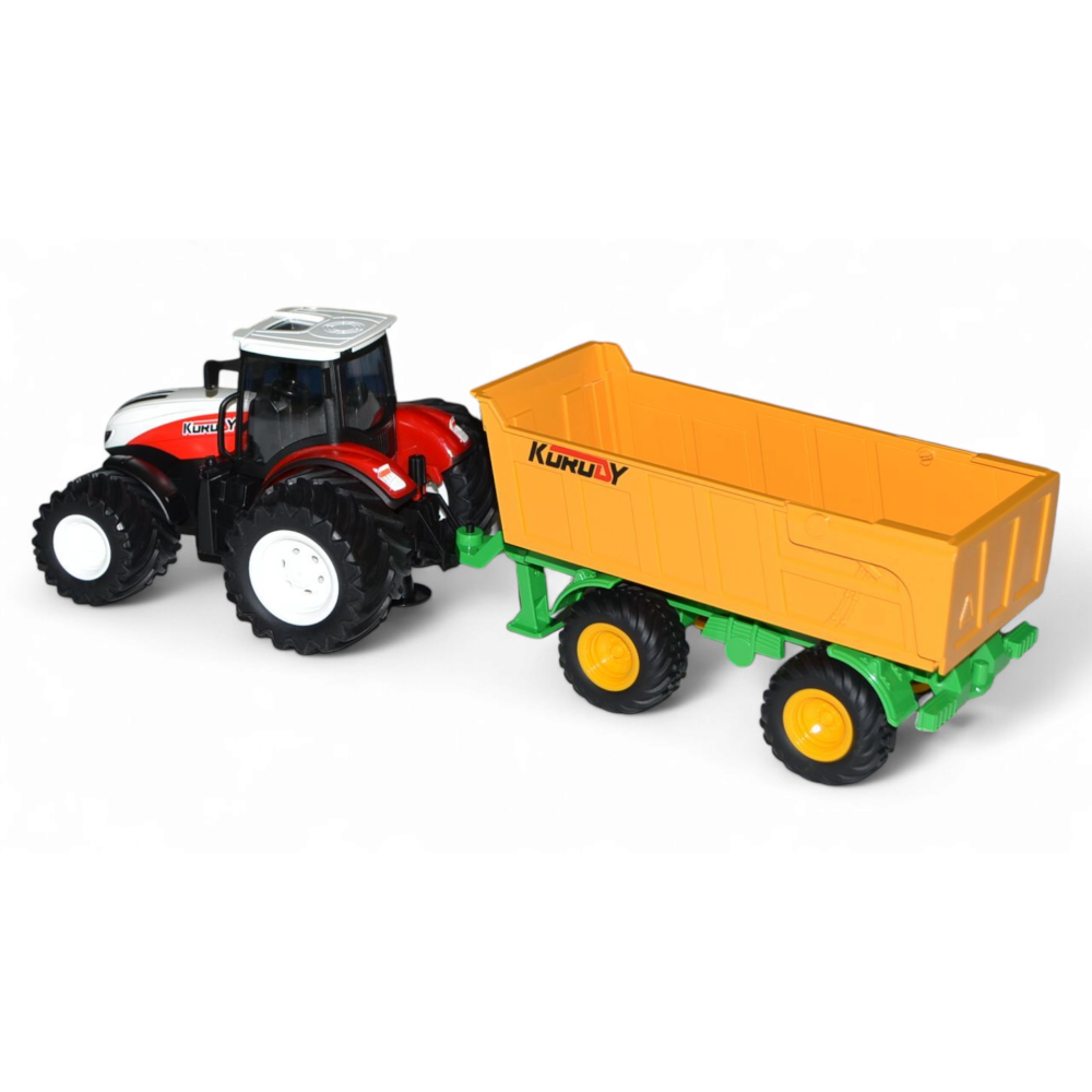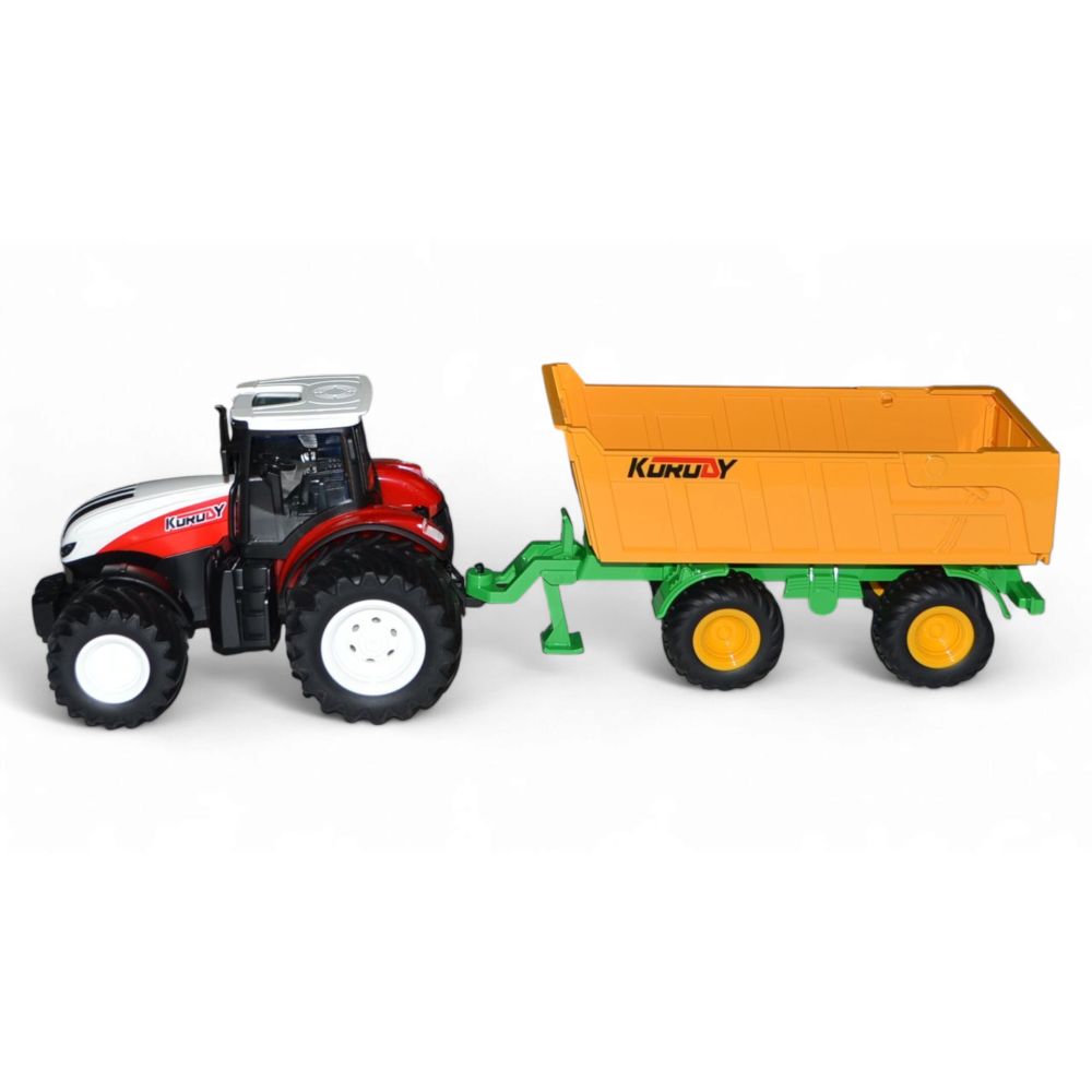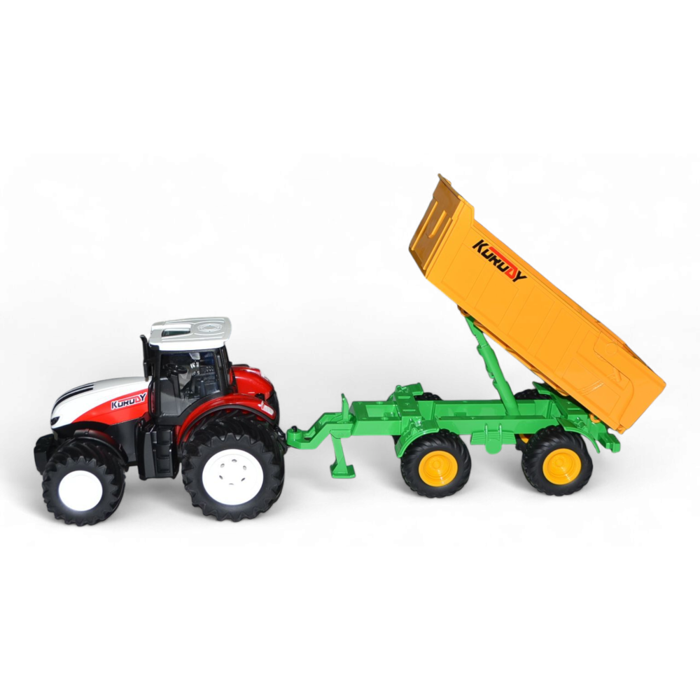 Трактор оснащен надежным двигателем и реалистичными шинами, обеспечивающими отличное сцепление с поверхностью. Прицеп добавляет функциональности и реализма в игру. Загружайте его сеном, урожаем или строительными материалами, развивая воображение и мелкую моторику. Модель выполнена из прочных и безопасных материалов, обеспечивая долговечность и надежность.