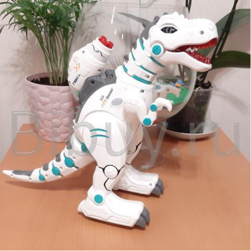 Радиоуправляемый интерактивный динозавр, стреляет ракетами + дышит паром - 88002 - это динозавр, который может: ходить в нескольких режимах, разворачиваться в обе стороны, стрелять присосками, танцевать( робот двигается, стреляет, рычит под набор песен), запоминать команды, а потом их выполнять. И последнее и самое главное : робот выпускает пар изо рта. Пар в свою очередь подсвечивается лампочками, что создаёт эффект огня.