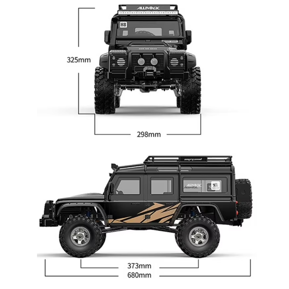 Радиоуправляемый краулер MJX Hyper Go 1/8 Трофи модель - MJX-H8H+BLACK - это трофи модель от компании MJX R/C с пластиковым копийным кузовом Defender, который имеет стильный ярко оранжевый и голубым цвет масштаба 1/8, предназначена для Трофи-Рейдов. Комплектация без АКБ и зарядного устройства позволит вам самостоятельно выбрать будущие характеристики модели. Если вам нравятся прогулки на свежем воздухе, то это модель предназначена для вас. Вы сможете с лёгкостью преодолевать бездорожье, покорять горы и не проходимые болота. Правильная развесовка модели поможет вам в покорении крутых подъёмов и спусков, высокий клиренс и большой ход подвески поможет вам при езде бездорожью. Модель MJX H8H оснащена постоянным полным приводом 4х4, 2х ступенчатой коробкой передач, подключаемыми блокировками дифференциалов. В любой момент вы сможете включить пониженную передачу одним нажатием кнопки на пульте, передачи переключаются сервоприводом напрямую через качалку. Блокировки включаются раздельно кнопками на пульте управления, таким образом можно управлять балансом между управлением и максимальным сцеплением с трассой.