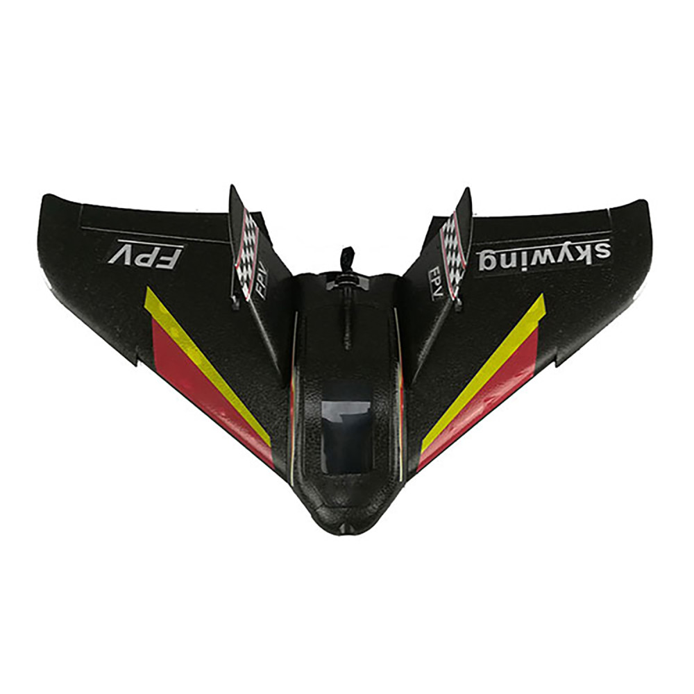 Радиоуправляемый самолет Top RC FPV Flying Wing (EPP, 680mm) PNP - TOP078B - это модель самолета FPV Skywing выполнена по схеме «летающее крыло», как следствие, самолёт имеет высокую вертикальную манёвреность. Чёрный окрас позволяет идентифицировать модель на фоне неба. Передняя кромка крыла выполнена уступом. Снабжена двумя вертикальными стабилизаторами. Удобный доступ к агрегатному отсеку.