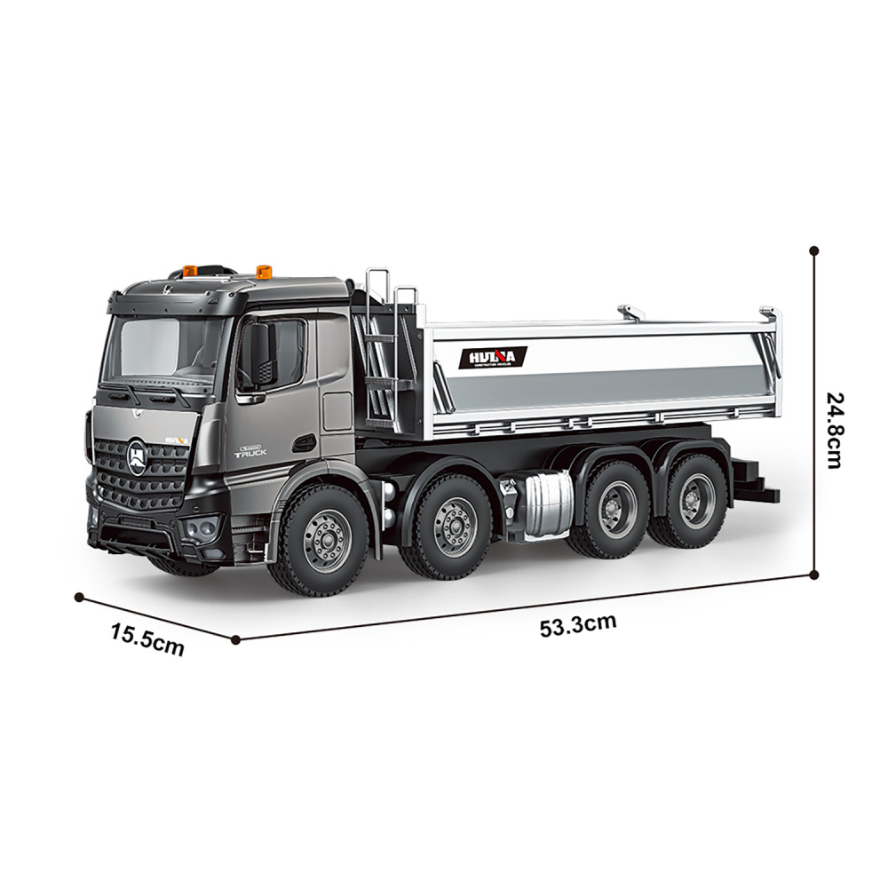 Радиоуправляемый самосвал 8х8 HUINA 13CH 1:14 - HN1536PRO - это миниатюрная копия самосвала на 4 осях с вместительным металлическим кузовом. Самосвал выполнен очень реалистично и полностью функционирует. Машина обладает высокой проходимостью, благодаря приводу на 4 задние колеса. Такое решение позволяет избежать проскальзывания задних колес.
