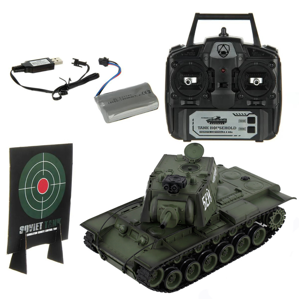 Радиоуправляемый танк R-WINGS Советский КВ-1 - RWG021-844 - радиоуправляемая модель советского танка с пневматической пушкой. Индикатор предупреждения перед выстрелом и разряда аккумулятора. Высокодетализированный кузов с навесным оборудованием. Танк КВ-1 - это настоящая коллекционная модель советского танка, участвовавшего в сражениях во времена Второй мировой войны. Танк в точности повторяет оригинал, имеет навесное оборудование. На танке даже нанесена надпись ''Бей фашистскую гадину'', которую наносили на корпус в Великую Отечественную войну.