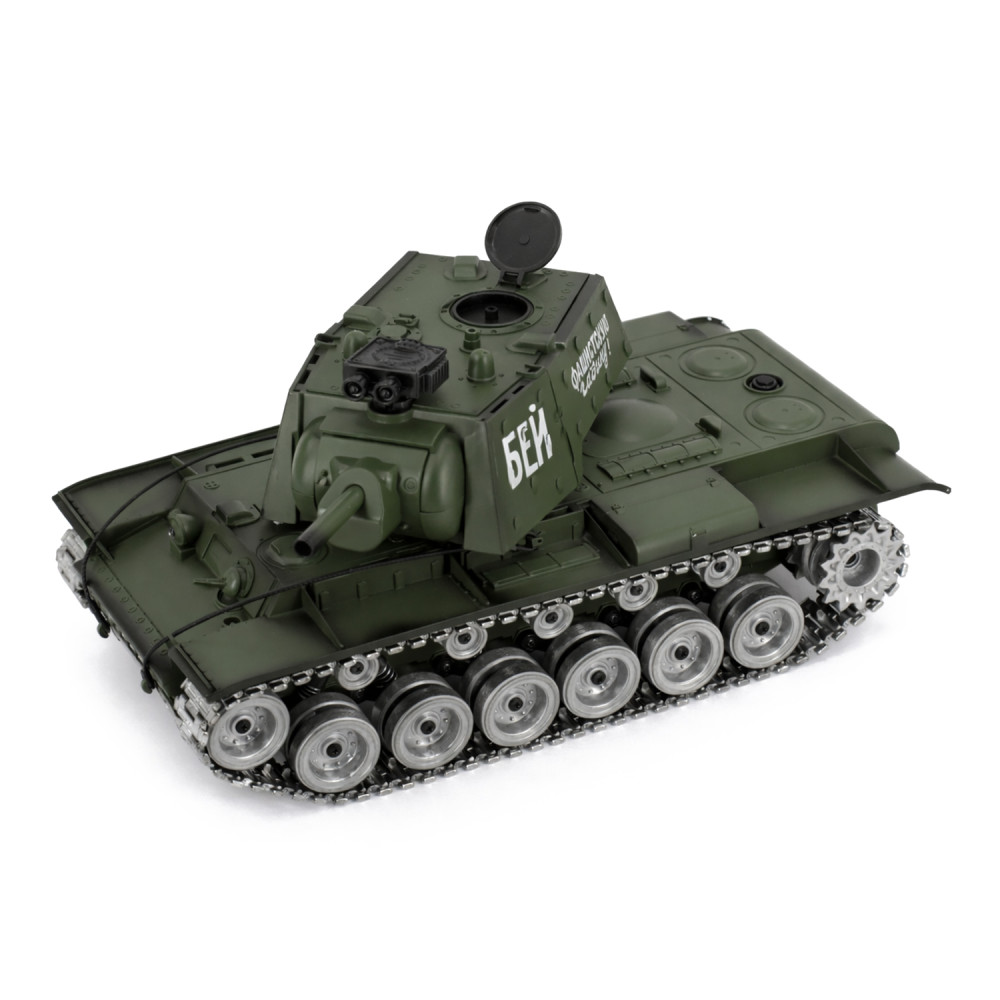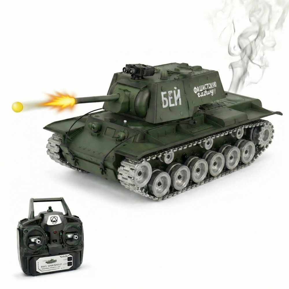 Радиоуправляемый танк R-WINGS Советский КВ-1 - RWG021-844PRO - радиоуправляемая модель советского танка с пневматической пушкой. Индикатор предупреждения перед выстрелом и разряда аккумулятора. Высокодетализированный кузов с навесным оборудованием. Танк КВ-1 - это настоящая коллекционная модель советского танка, участвовавшего в сражениях во времена Второй мировой войны. Танк в точности повторяет оригинал, имеет навесное оборудование. На танке даже нанесена надпись ''Бей фашистскую гадину'', которую наносили на корпус в Великую Отечественную войну.